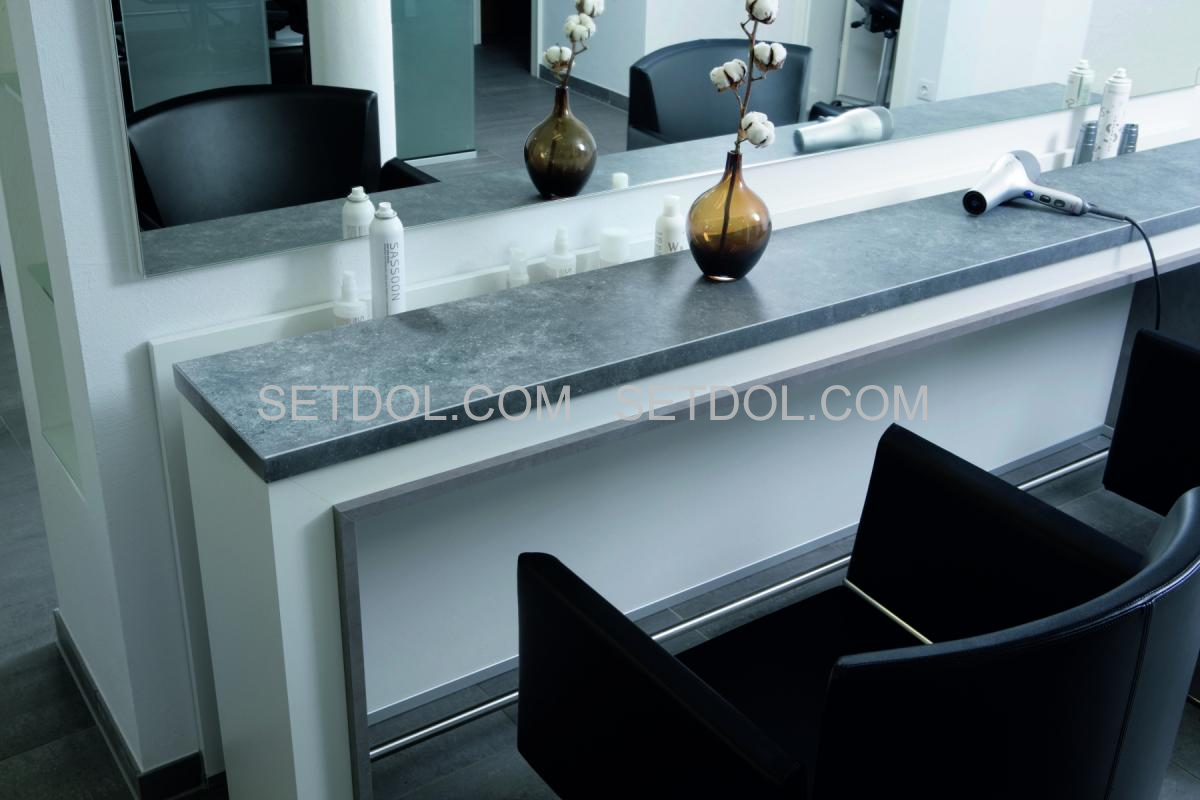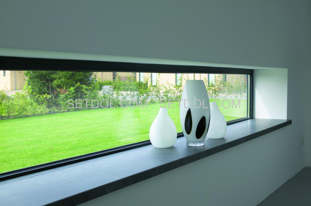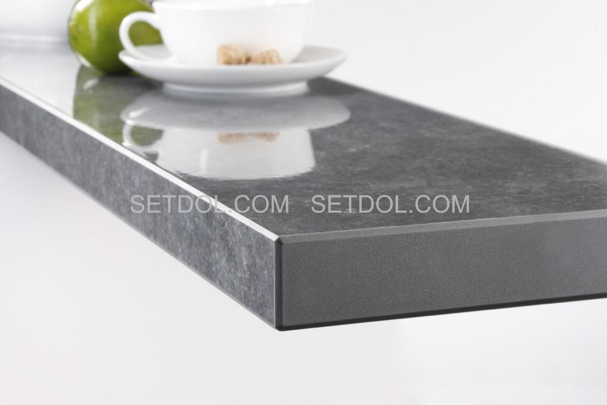 Немецкий концерн Möller выпускает серию подоконников премиум класса LD-40 с декоративным покрытием "серый топаз". Рисунок имитирует поверхность натурального камня с реалистичными светлыми прожилками, скопированными с поверхности отшлифованного массива кремния, песчаника, известняка. Название оттенка символизирует строгость, твердость натуральных декоративных, драгоценных минералов.